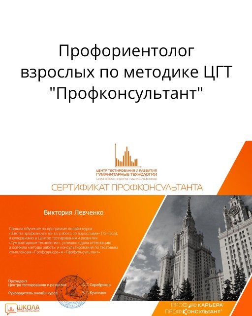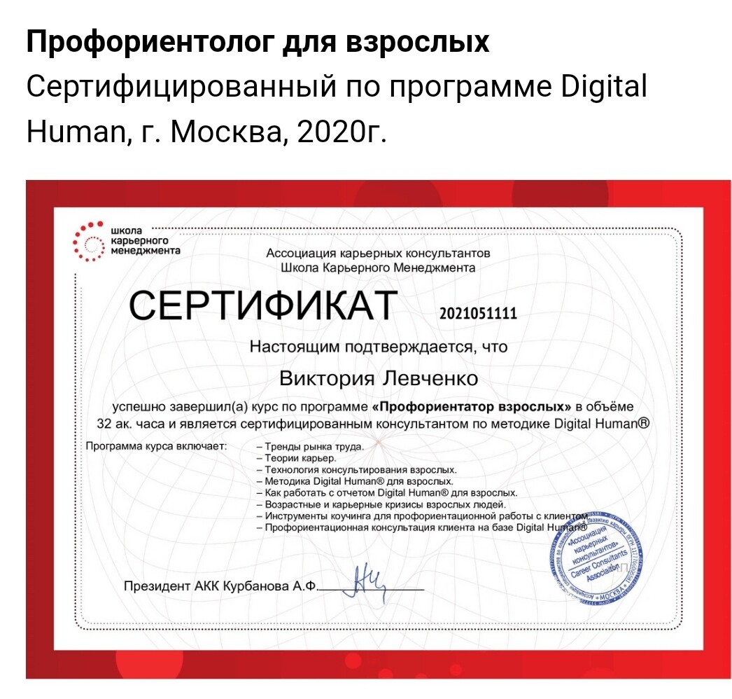 Семейный профориентолог подростков и взрослых (Академия Людмилы Салоид, Школа карьерного менеджмента "Профориентатор подростков" и "Профориентатор взрослых").