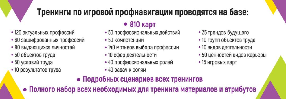В курсе применяются около 1000 профориентационных карт, через которые дети знакомятся с базовыми понятиями профориентации.