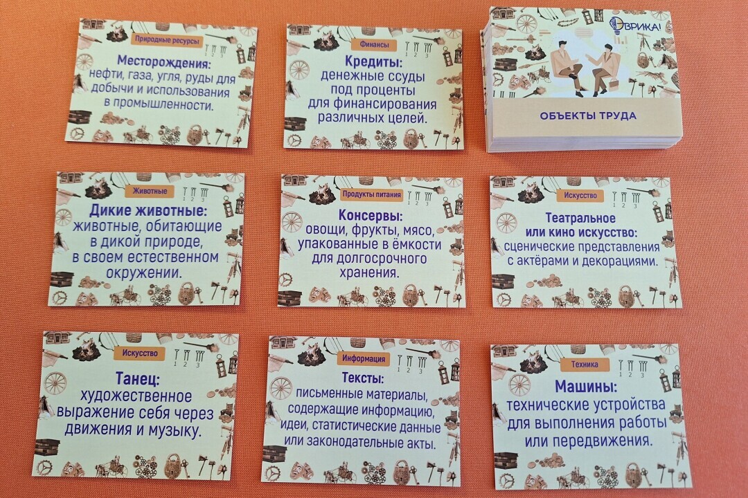 В курсе применяются около 1000 профориентационных карт, через которые дети знакомятся с базовыми понятиями профориентации.