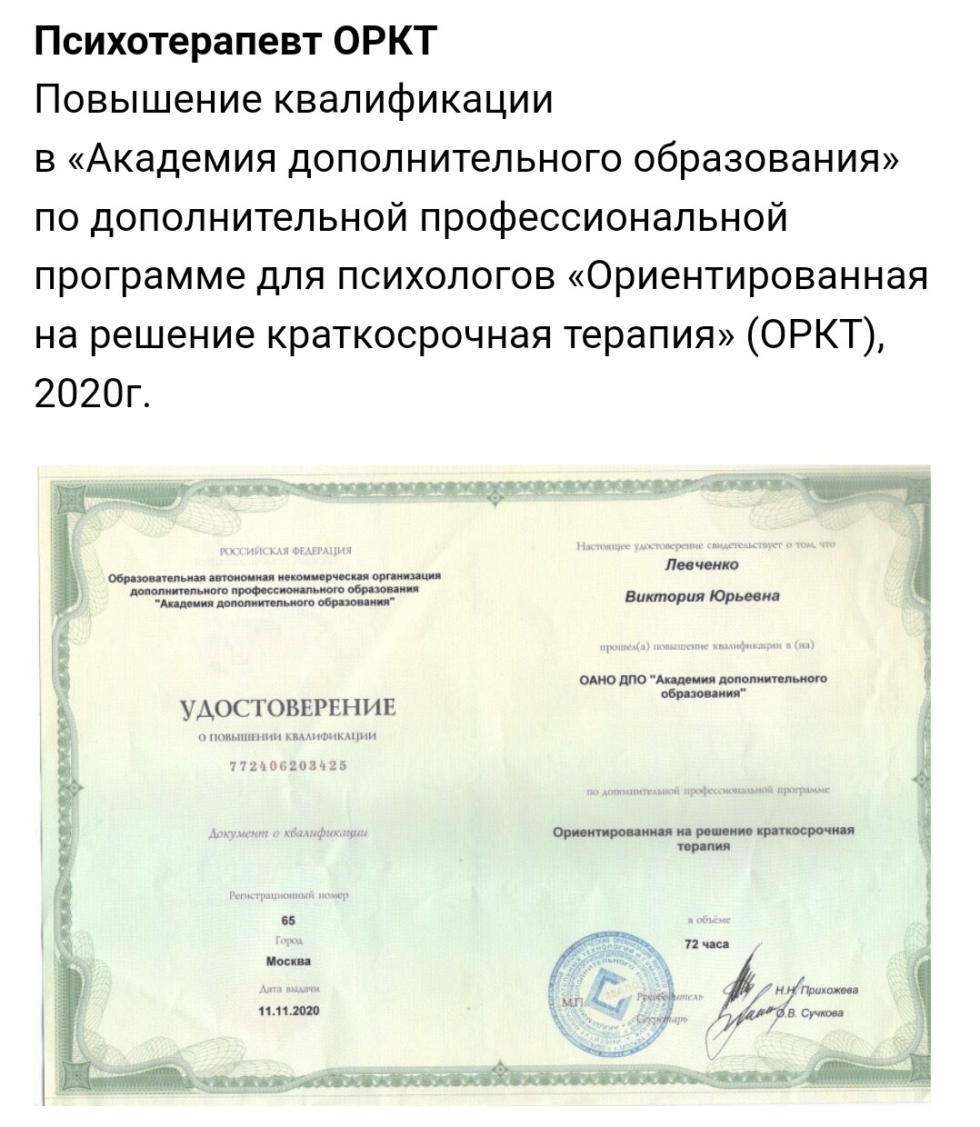 Психотерапевт ОРКТ.